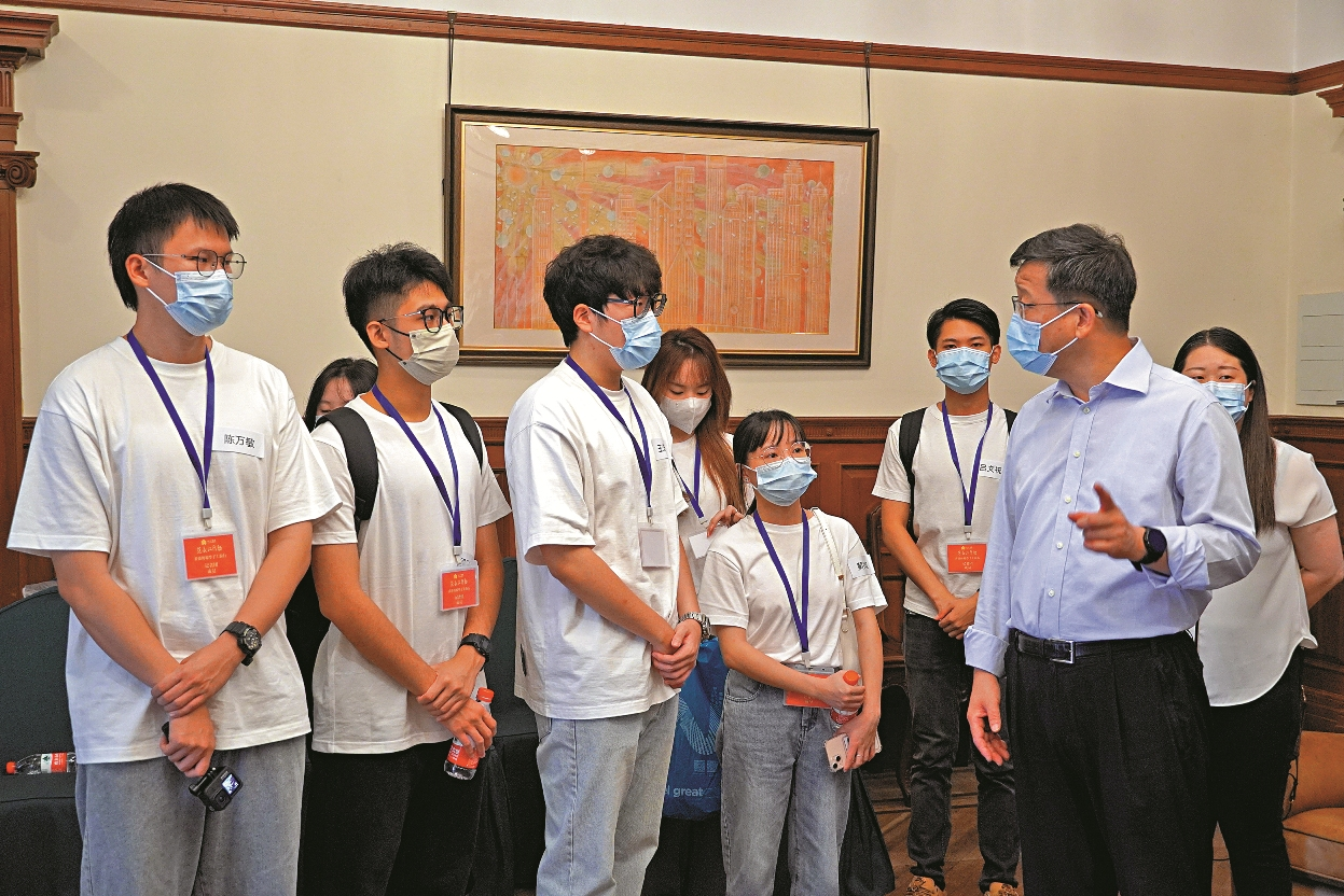 周亞軍說,自2003年滬港合作會議首次會議在港舉行至今,滬港合作會議共舉行了五次。去年滬港合作會議第五次會議通過視頻形式舉行。會上,滬港雙方就13個範疇的合作方向達成共識。周亞軍表示,青年交流也一直是滬港合作交流的重點領域,也歡迎同學們通過本次採訪活動,將來能來上海發展,為滬港合作交流的明天貢獻青春智慧。聽完周亞軍的介紹,同學們頻頻點頭,還認真做了筆記。