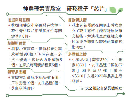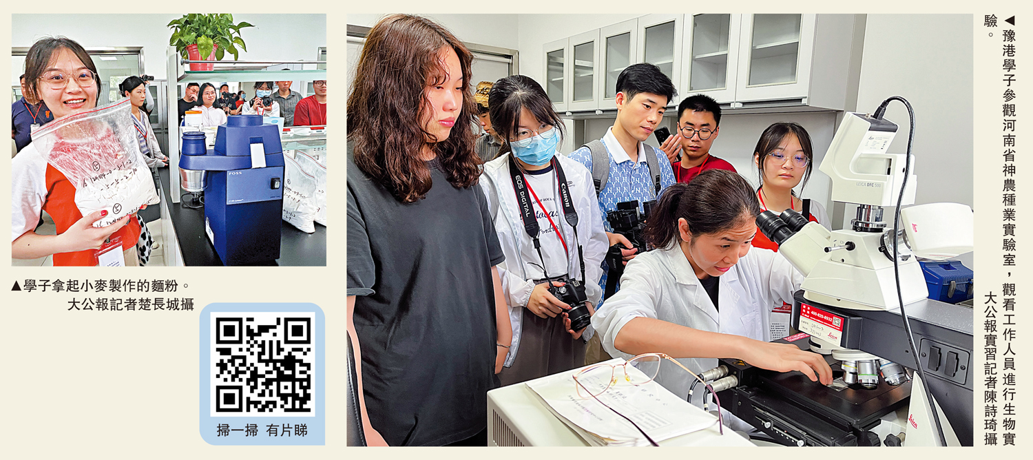 (大公報實習記者馮一笑、牛斌花、林浩星、吳世怡、徐春敏、范佳琦、林惠欣、肖峰輝、張鈺梓、楊浚謙、朱璐璐、薛心壹、朱洵可鄭州報道)「每當提起農業只會聯想到耕田、收割等體力活,從沒想過農業能與高科技聯繫。」6月27日下午,「2023范長江行動─香港傳媒學子中原行」採訪團走進河南省神農種業實驗室,豫港學子進入育種實驗室參觀學習,感到十分驚喜。作為農業的「芯片」,一粒種子,往往能關係到國家糧食安全。神農種業實驗室聚焦種業「卡脖子」難題,圍繞小麥、玉米、花生、芝麻、畜禽等優勢領域,由院士和中原學者領銜,組建5支核心研發團隊,培育優質糧種。讓中國的田野種上更多河南種子,端牢中國飯碗。
