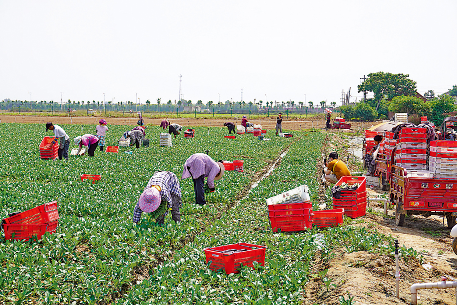 「香港人喜歡吃青菜,當地有句話,說是『三天不吃青,兩眼冒金星』。」我種的青菜,每天都有30噸發往香港。」新鄭市梨河鎮盈收種植合作社的負責人郜俊民說。6月26日上午,豫港學子走進河南省新鄭市梨河鎮供港蔬菜高效農業種植片區,看到農民正在烈日照射下收割菜心,很是辛苦。