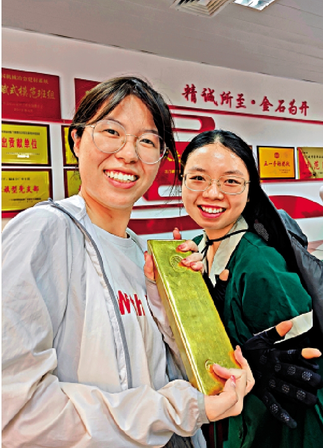 中原黃金冶煉廠是內地知名的金銅冶煉、黃金精煉加工企業,被中國黃金協會命名為「高純金精煉加工基地」。在參觀的過程中,學子們一個接一個地感受成品金磚的質感,不少人直呼過癮。