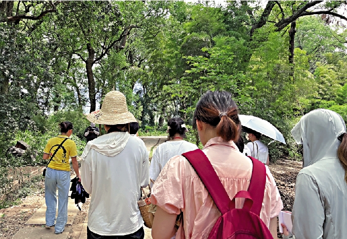 (大公報實習記者駱文琳、張依林)在江西撫州樂安的烏江畔,有一片綿延數里的古樟樹林。11日上午,「范長江行動江西行」採訪團對「中國第一古樟林」——牛田古樟林進行了實地探訪。學子們沿着林中彎曲的鵝卵石小路漫步,「這裏清爽的古木香氣,濃密的樹蔭讓我在如此炎熱的夏日中感受到了清涼。」來自暨南大學的施宏咪感嘆道。