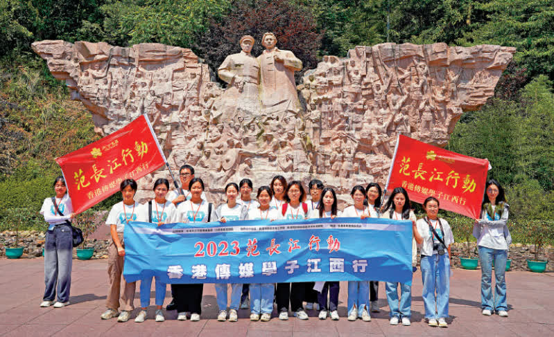 (大公報實習記者曾婉芩、黃倩怡、劉秋樺、張瑞純、薛卓穎、吳世怡 井岡山報道)近年來,內地紅色旅遊熱度不斷升溫。數據顯示,90後、00後已成為紅色旅遊的主力軍。今年上半年參與紅色旅遊的遊客中,年齡在18歲至35歲的中青年佔比達50%。江西井岡山作為中國革命搖籃,也成為紅色旅遊熱門目的地。7月12日,2023「范長江行動——香港傳媒學子江西行」採訪團來到井岡山革命烈士陵園和井岡山博物館參觀。贛港年輕學子通過觀看融合聲、光、電多媒體等多種表現形式的展覽,共同回顧革命鬥爭的崢嶸歲月,領略井岡山精神;在井岡山革命烈士陵園,同學們敬獻花籃、深深鞠躬緬懷先烈,表達了自己的哀思和敬意。