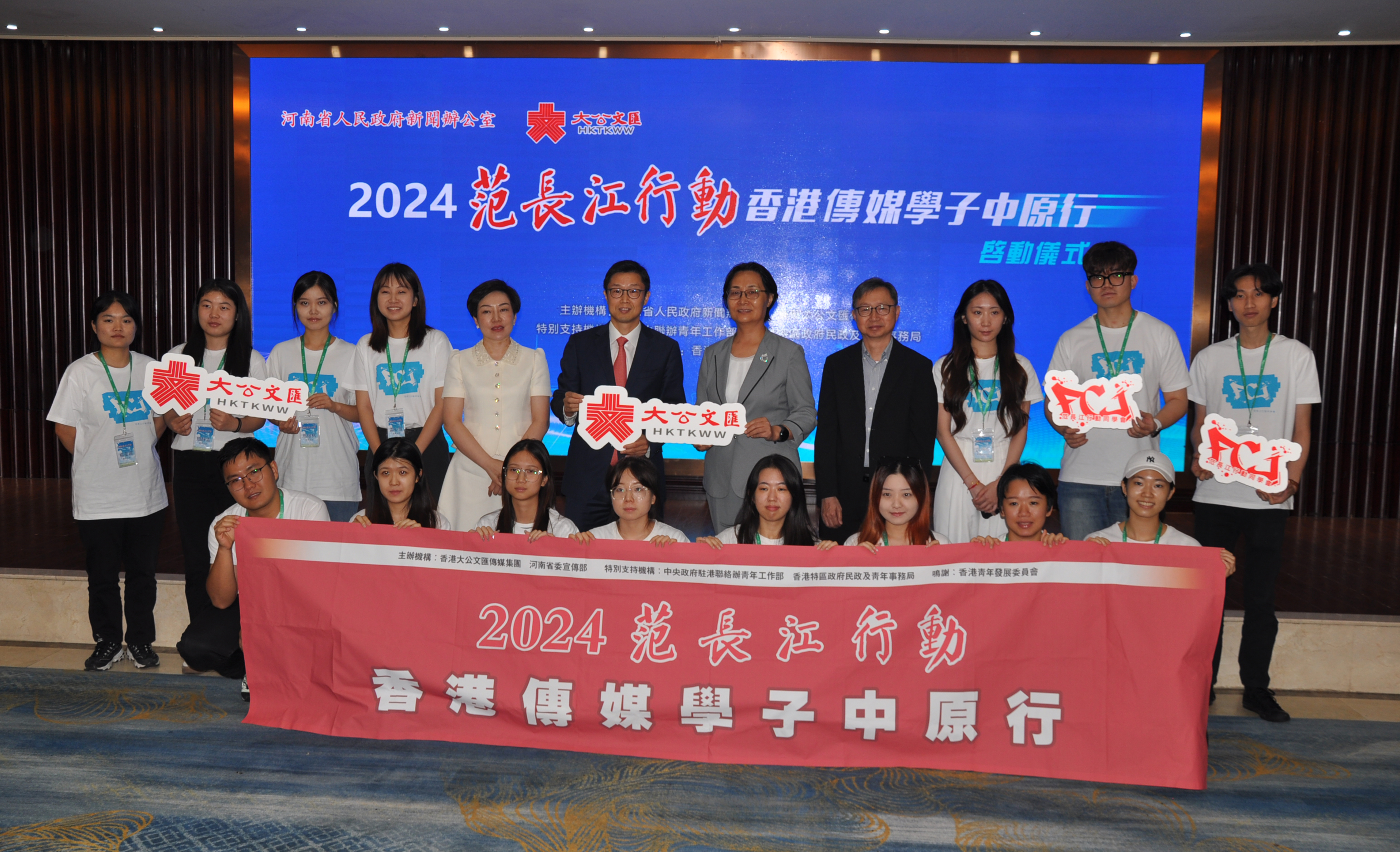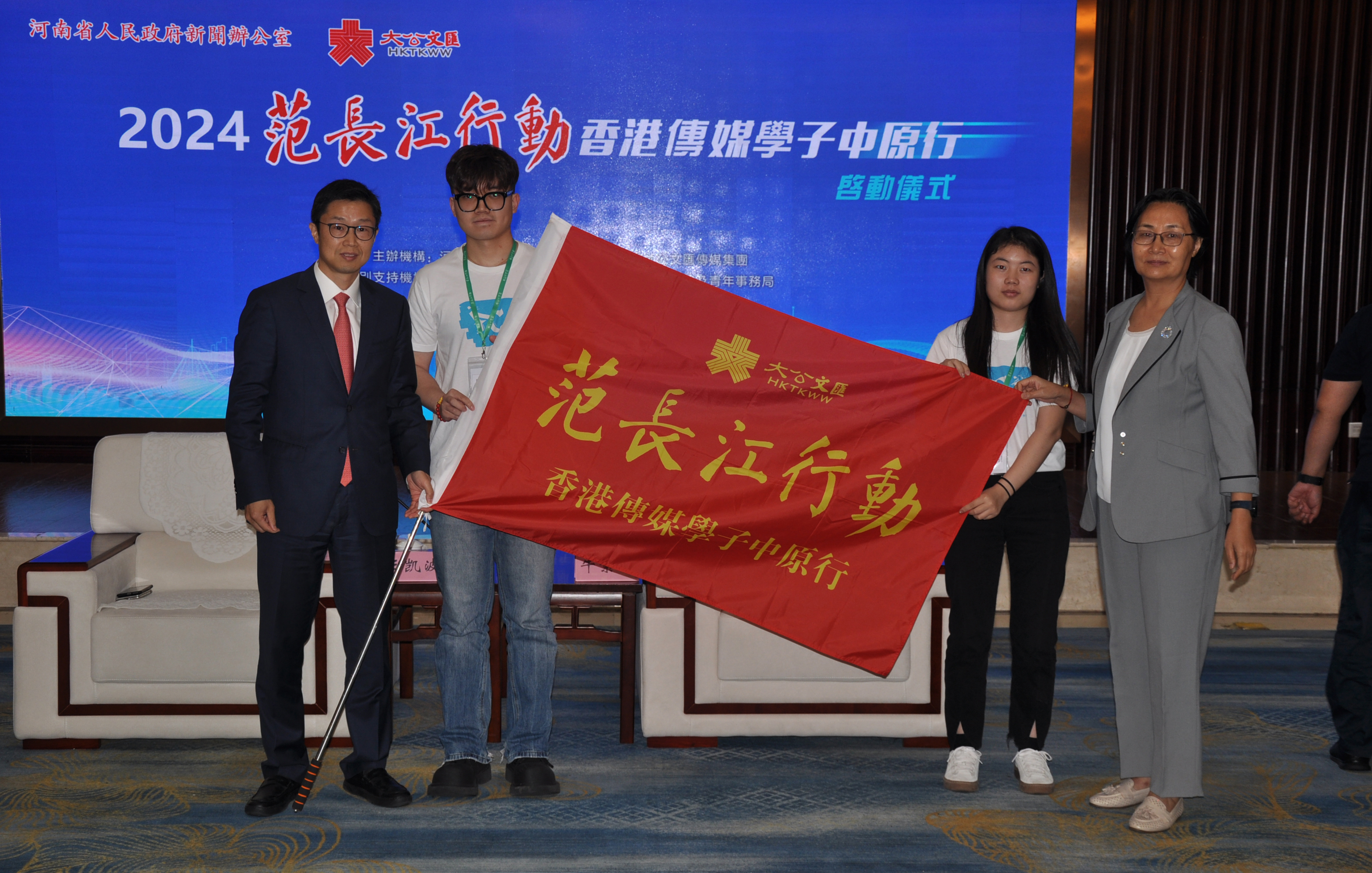 (大公文匯網記者 戚紅麗、馮雷)今日(6月17日),大公報迎來創刊122周年的紀念日。由香港大公文匯傳媒集團、河南省委宣傳部共同主辦的「2024范長江行動-香港傳媒學子中原行」活動,當天在河南鄭州啟動。河南省委宣傳部二級巡視員牛素玲與香港大公文匯傳媒集團副董事長、副總編輯王凱波為採訪團授旗。